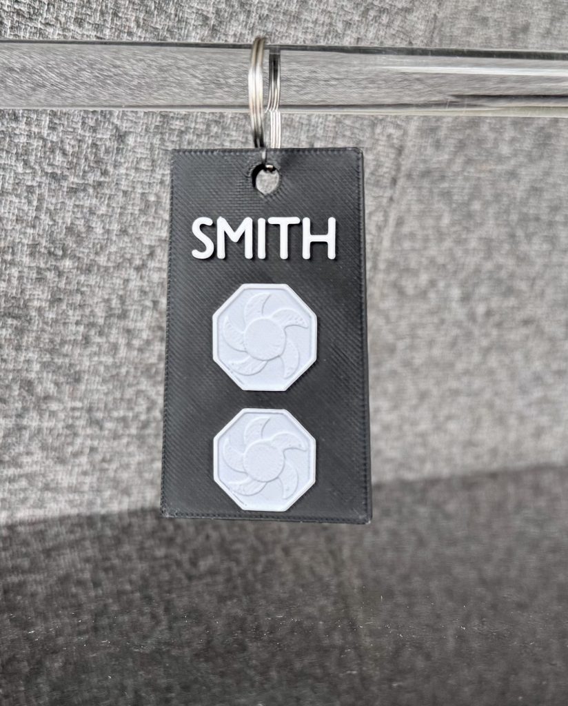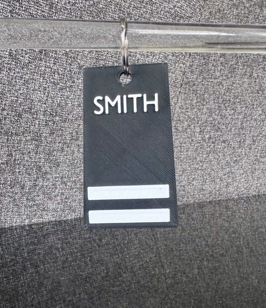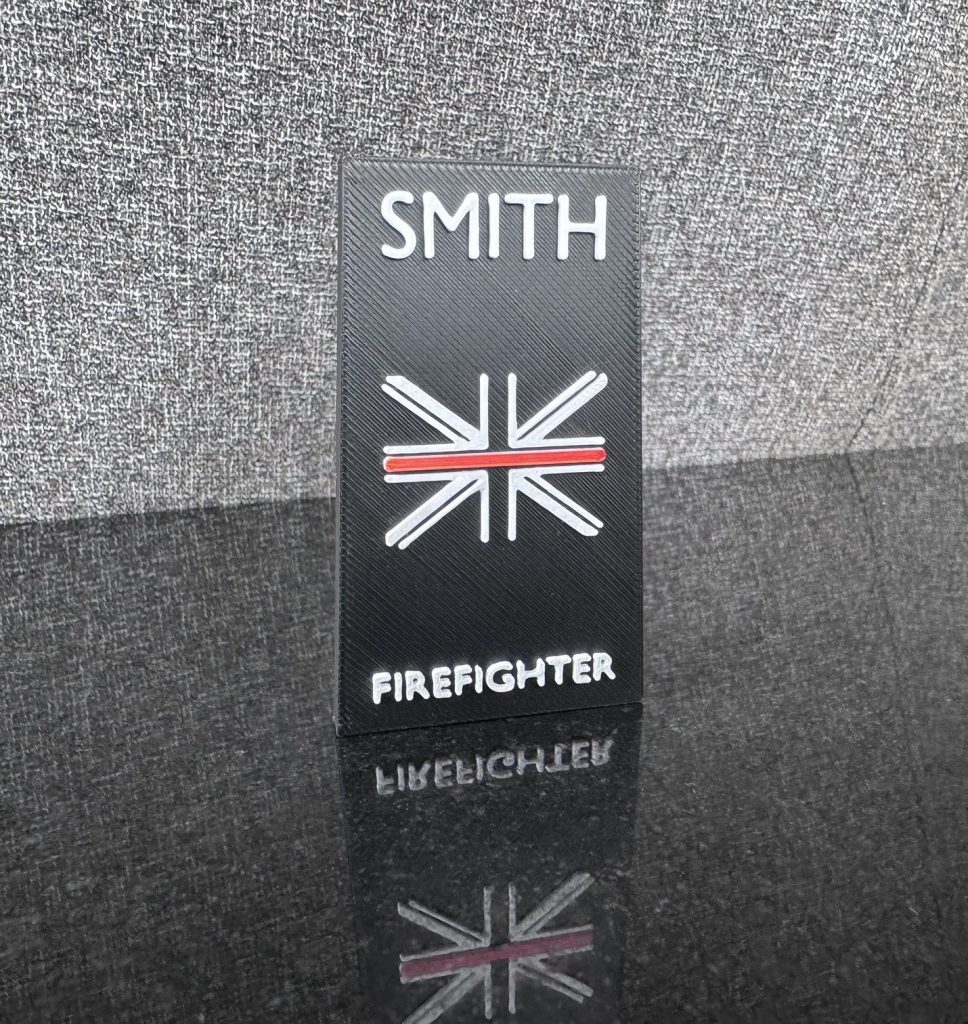 Chunky enough to be rugged with slightly raised letter/numbering and customised with your name and either rank, Thin Blue Line or look just like the actual epaulette.